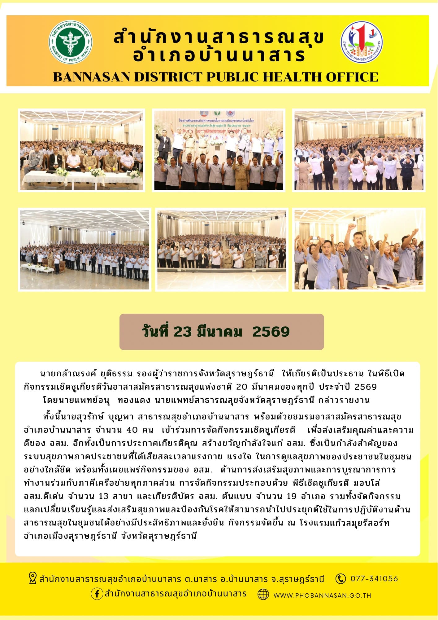 ยินดีต้อนรับสู่สำนักงานสาธารณสุขอำเภอบ้านนาสาร จังหวัดสุราษฏร์ธานี